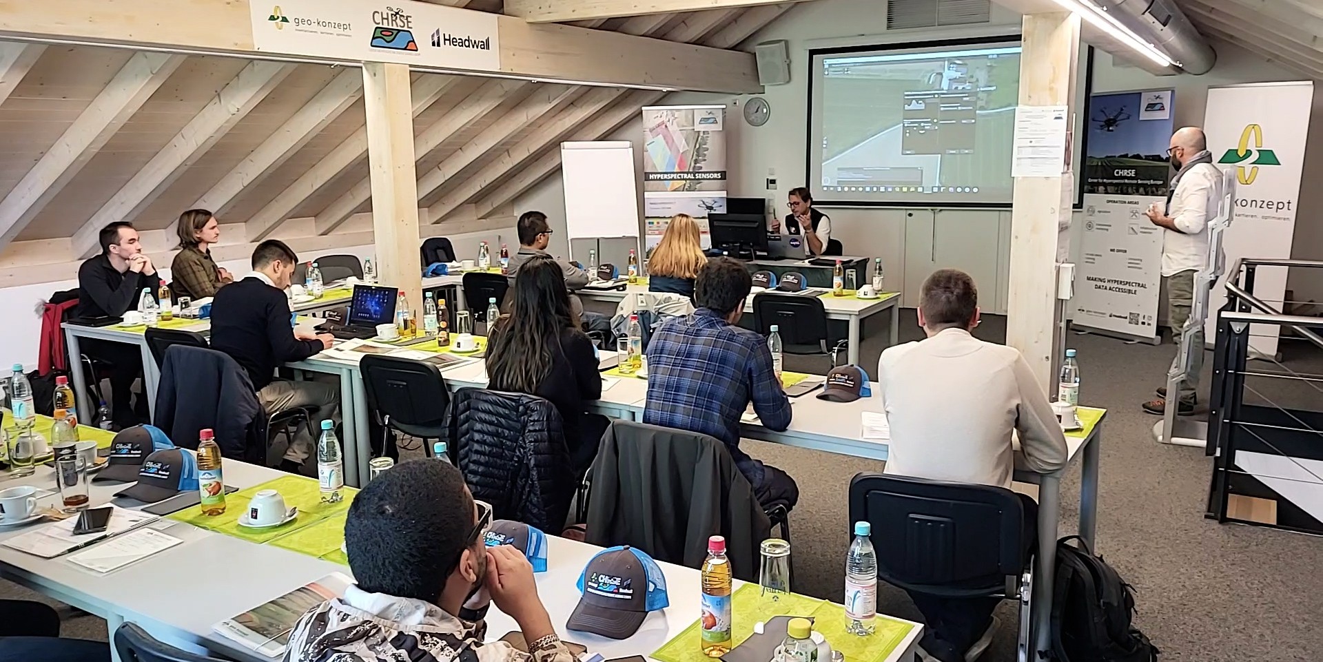 Auch unsere Fernerkundung/Drohnen bieten regelmäßige Workshops an, die sich bereits seit Jahren in der Branche etabliert haben: Gemeinsam mit unserem Partner Headwall Photonics wurde das CHRSE eröffnet (Center for Hyperspectral Remote Sensing Europe). Aus den Einzelworkshops wurde inzwischen eine ganze Spectral Week, in der hochkarätige Experten Wissenswertes zu multispektralen, hyperspektralen und LiDAR-Fernerkundungstechnologien vorstellen, Workflows im Umgang mit Drohnen aufzeigen und die Teilnehmer fit für die praktische Arbeit machen, um präzise Ergebnisse zu generieren.